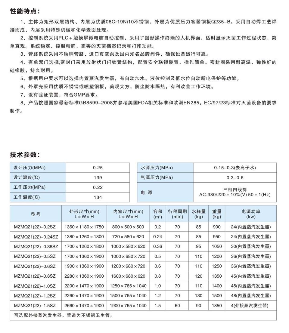 MZMQ21(22)-□SZ手動門蒸汽脈動真空滅菌器